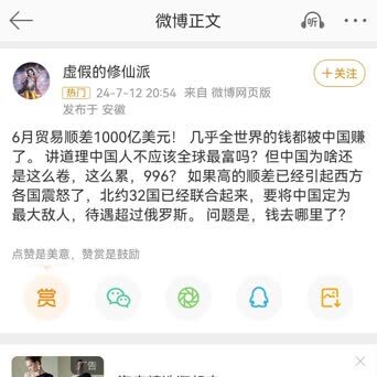 中国巨大的贸易顺差,赚的其实不是“钱”,而是全世界的“资源”,只有最强大的工业国,才能掌控全世界资源的定价权……有了取之不尽用之不竭的资源,才能继续增强生产力,捍卫国家安全,捍卫老百姓的生活水平。